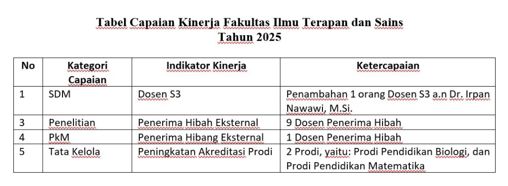 Capaian Kinerja Fakultas Ilmu Terapan dan Sains di Tahun 2025